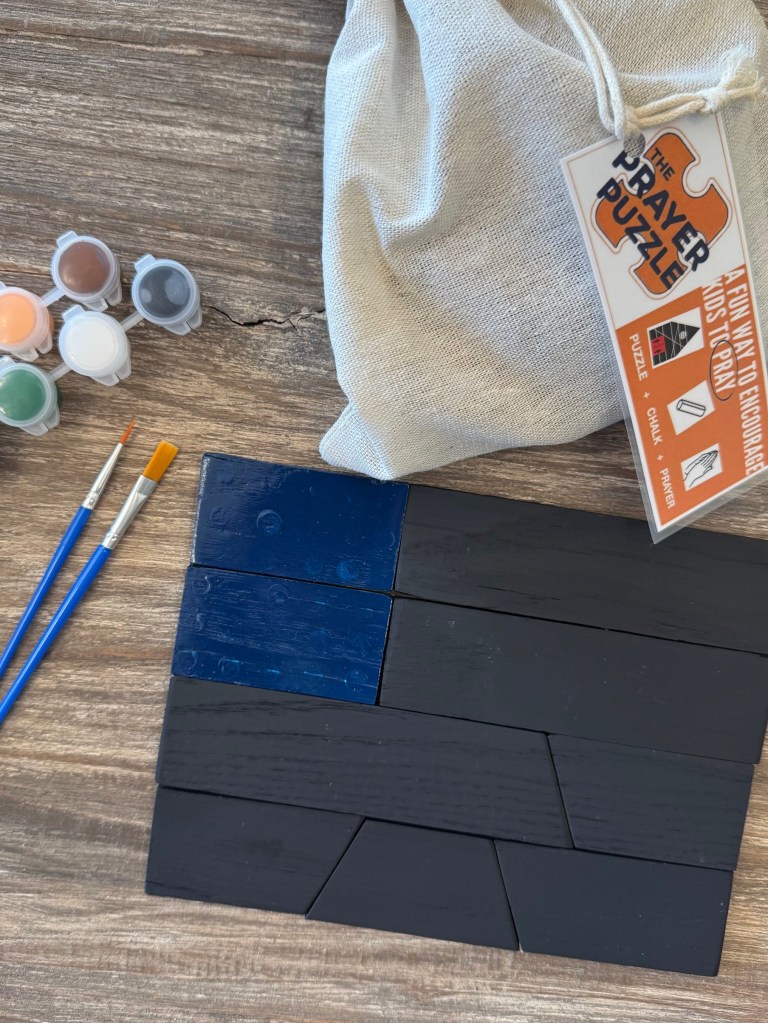 THE PRAYER PUZZLE – chalkboard pieces of wood that form a shape – like a HOUSE, a CROSS or a CHRISTMAS TREE. Write a prayer need, or someone you’re praying for, on each piece of wood – as you put the puzzle together, YOU PRAY. Created by a dad of three kids who understands the power of prayer, because the Bible says that the prayers of everyone who prays can be powerful and effective…and this includes kids.